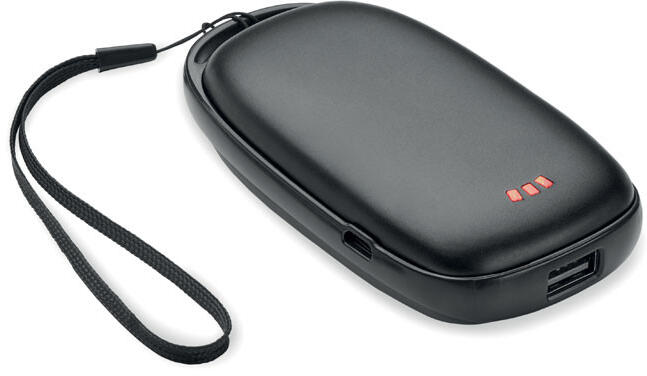 Elektromos kézmelegítő alumíniumból, 3 intenzitási szinttel (30°, 37° és 50°), beépített 4000 mAh külső akkumulátorral és csuklópánttal. C típusú be- és kimenet és USB-A kimenet. Teljesítmény: DC5V/2A. C típusú töltőkábel A típusú adapterrel.
