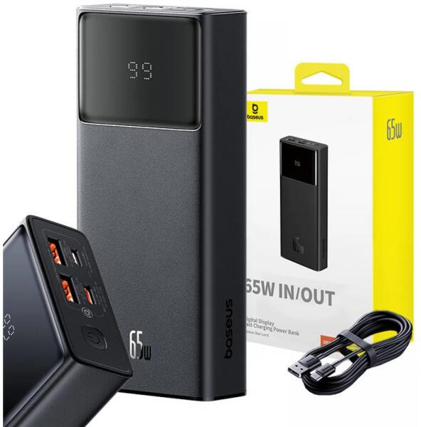 Power Bank Baseus Star-Lord, 20000mAh 65W + USB - USB-C cable (Black) Powerbank Baseus OS Star-Lord 20000mAh 65W USB cable - USB-C (black). The Baseus OS Star-Lord powerbank is a powerful 20000mAh device that supports up to 65W of power, so you can quickly charge your devices and save a lot of time. A full powerbank allows approximately one full charge of an Applebook Pro 14 or one full charge of