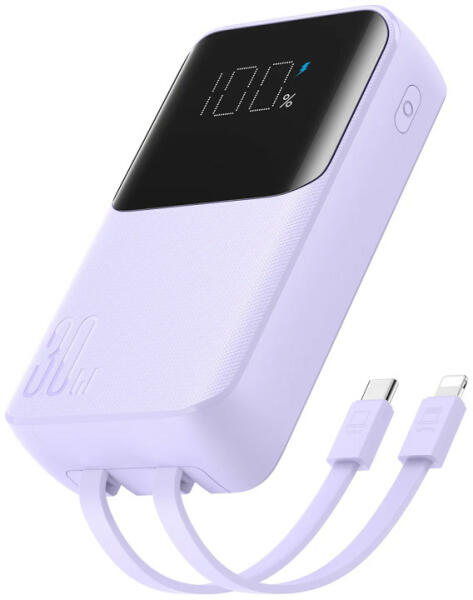 Joyroom JR-PBC06, mini külső akkumulátor 10000 mAh kapacitással és akár 30W teljesítménnyel, beépített USB-C és Lightning kábelekkel. A Power Delivery-nek köszönhetően azonnali töltést biztosít, a beépített USB-C és Lightning kábelek pedig lehetővé teszik az iPhone és Android telefonok egyszerű csatlakoztatását. A négy kimenet lehetővé teszi akár négy eszköz egyid