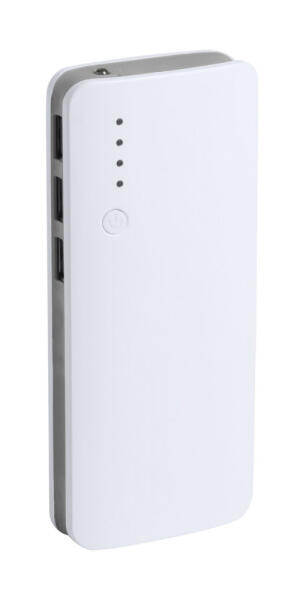 Műanyag USB power bank 3 csatlakozóval és 10000 mAh akkumulátorral. Töltőkábel nélkül szállítjuk.