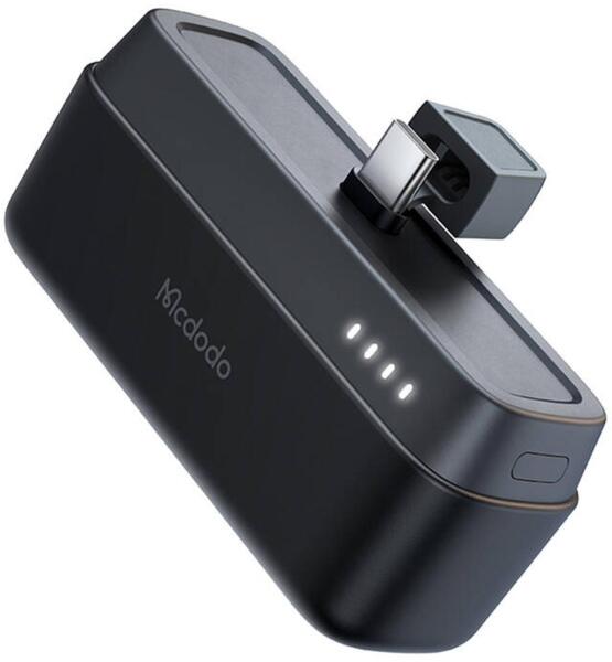 Mcdodo MC-6301 20W 5000 mAh powerbank USB-C csatlakozóval (fekete) A Mcdodo MC-6301 egy kompakt, 5000 mAh-s powerbank olyan felhasználók számára, akik értékelik a kényelmet és a teljesítményt. Gyors 20 W-os töltésével és beépített USB-C csatlakozójával a powerbank tökéletes a mindennapi használatra. Minimalista dizájnja, összecsukható állványa és kiterjedt biztonsági r