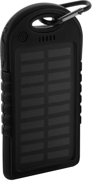Szilikon borítású, műanyag USB power bank 4000 mAh akkumulátorral, napelemes töltővel és 1 LED-es világítással. A termék micro USB töltőkábelt tartalmaz.