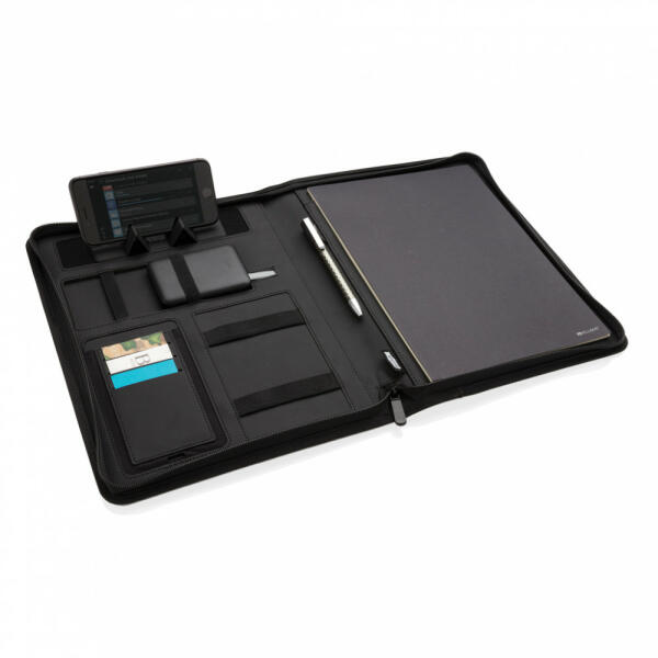 Ez a mappa amellett, hogy megfelel a legújabb technológiának vonalas jegyzettömbbel is rendelkezik (20 lap, 70 gramm). Fedőlapja vezeték nélküli töltőpaddal rendelkezik mobiltelefonhoz. (Android legújabb generáció, iPhone 8 és újabb). A régebbi telefonok és tabletek az 5000 mAh powerbank USB csatlakozóin keresztül tölthetőek. Bemenete: 5V/2,1A, Kimenet 1: 5V/2,1A, Kimenet 2: 5