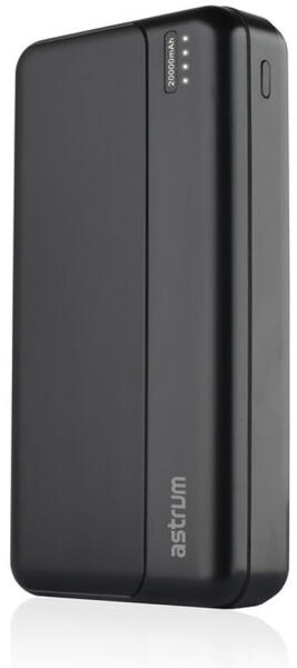 Információk Astrum PB630 20000mAh fekete gyorstöltő PD 3.0, QC 4.0 power bank 2X USB-A (2.4A), 1X Type-C (22,5W), li-polymer cellákkal