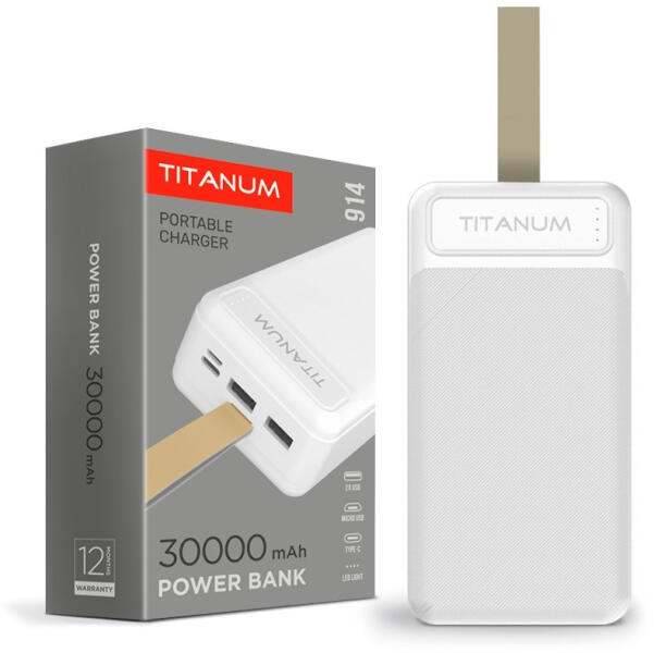 Bemeneti feszültség: MicroUSB: DC5V/2A; C típus: 5V/2AKapacitás: 30000mAhCsatlakozó típusa: Micro USB, C típusú, 2USBKimeneti feszültség: USB1 és USB2: DC5V/2.1A (max. )Szín: FehérAnyagok: ABSSúly: 583gTeljes méretek: 140mm x 69mm x 38mm Bemeneti feszültség: MicroUSB: DC5V/2A; C típus: 5V/2AKapacitás: 30000mAhCsatlakozó típusa: Micro USB, C típusú, 2USBKimeneti feszültség: