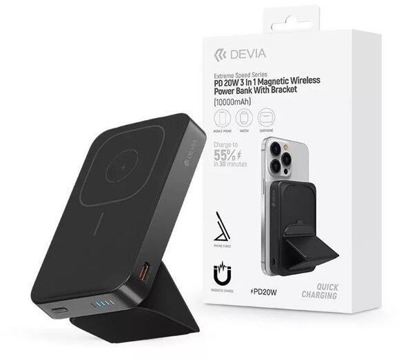 Devia ST395772 Extreme Speed Series 3in1 Magnetic vezeték nélküli PD 20W 10.000 mAh fekete powerbank