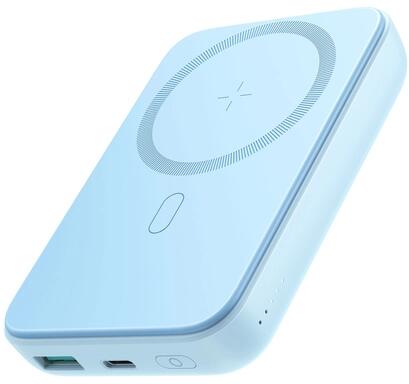 Jo yroom JR-W020 20W MagSafe power bank 10000mAh kapacitással + USB-A - USB-C kábel 0,25 m - világoskék A Joyroom JR-W020 powerbank lehetővé teszi három eszköz egyidejű gyors töltését. MagSafe technológiával működik, és USB-A és USB-C csatlakozókkal rendelkezik. Támogatja a gyorstöltési protokollt - Power Delivery. 10 000 mAh kapacitással rendelkezik, így körülbelül 20