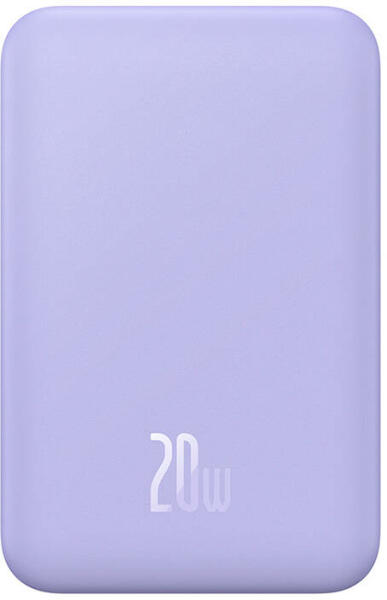 A Baseus Magnetic Mini Power Bank egy kompakt és hordozható külső akkumulátor, mely 5000mAh kapacitással és 20W teljesítménnyel bír. A készülék USB-C aljzattal rendelkezik, ezáltal kompatibilis számos különböző elemmel. Termékünk jellegzetessége a modern, lila szín és a MagSafe töltési technológia, ami gyors és biztonságos töltést biztosít.
