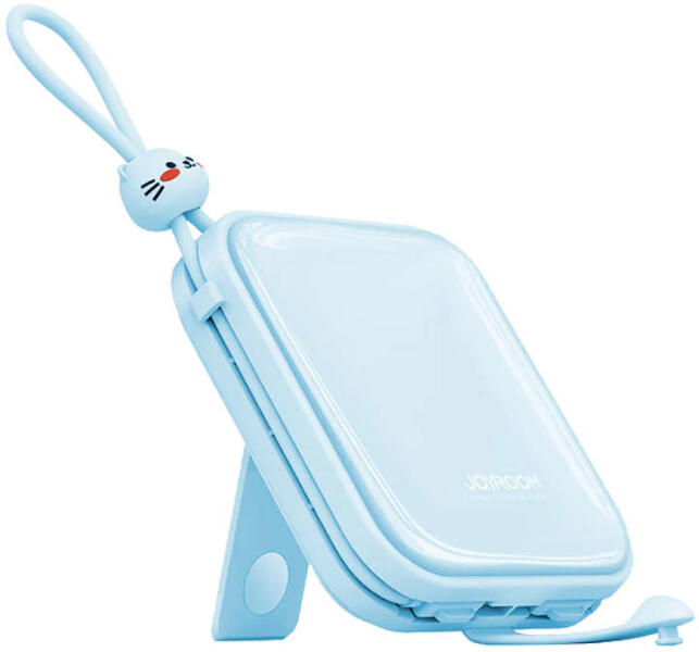 Joyroom Powerbank JR-L009 Cutie 10000mAh, 12W (kék) Töltsd fel készülékeidet stílusosan. A Joyroom Cutie sorozatú powerbankja kiemelkedik 10,000mAh kapacitásával és 12W teljesítményével. Számos gyors töltési protokollt támogat, lehetővé teszi három eszköz egyidejű töltését, és beépített USB-C és Lightning kábelekkel rendelkezik. Számos biztonsági funkciót biztosít