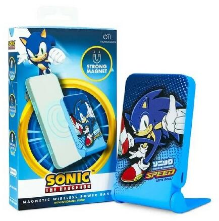 OTL SH1195 Sonic the Hedgehog mágneses vezeték nélküli powerbank 5000 mAh akkumulátor 15 W vezeték nélküli töltési teljesítmény beépített állvány kompatibilis mágneses töltésű eszközökkel