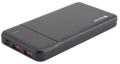 Kompakt és erőteljes Li-Polymer cellák: 15.000 mAh Bemenetek: Micro USB 5V/2A, USB C 5V/3A. Kimenetek: USB A 5V/2.4A max. (2x), USB C 5V/3A. 4 db fehér töltésjelző LED, stílusos, textúrált design, 50 cm-es fekete mikro USB töltő kábel. Maximálisan biztonságos használat köszönhetően a 6x-os biztonsági funkciónak. .