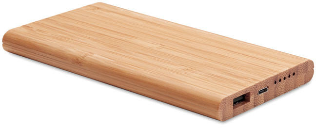 Vezeték nélküli töltő és 6000 mAh külső akkumulátor bambusz házban, C típusú csatlakozóval. Qi készülékekhez (újabb Android, iPhone®8, X, stb. ). A bambusz természetes anyag, színében, mintázatában és méretében esetenként eltérő lehet.