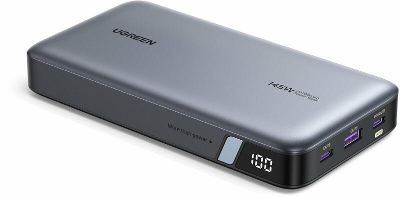 UGREEN PD-145W 25.000mAh 3-Port PowerBank [PB205] A nagy kapacitású újratölthető akkumulátorok hosszú élettartamot biztosítanak és nagy teljesítményt támogatnak, hogy megfeleljenek a laptopok töltési igényeinek. Bár az ára magasabb, mint a 18 W-os gyorstöltőké, ez is nagyon praktikus, mivel számos alkalmazásban használható. Szín : Szürke Akkumulátor típusa : Lítium-po