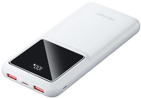 Gyártó: Vention | Név: 10000mAh Power Bank | Modell: FHKW0 | Szín: fehér | Elérhető portok: Kimenetek: 2x USB-A; Bemenetek/kimenetek: 1x USB-C; Bemenetek: 1x micro USB; | Kapacitás: 10 000 mAh / 37 Wh (3,7 V) | Bemenet (mikro USB): 5 V - 2 A, 9 V - 2 A | Bemenet (USB-C): 5 V - 3 A, 9 V - 2 A | Kimenet (USB-C): 5 V - 3 A, 9 V - 2,22 A, 12 V - 1,67 A | Kimenet (USB-A): 5 V - 3 A, 5 V - 4,5 A