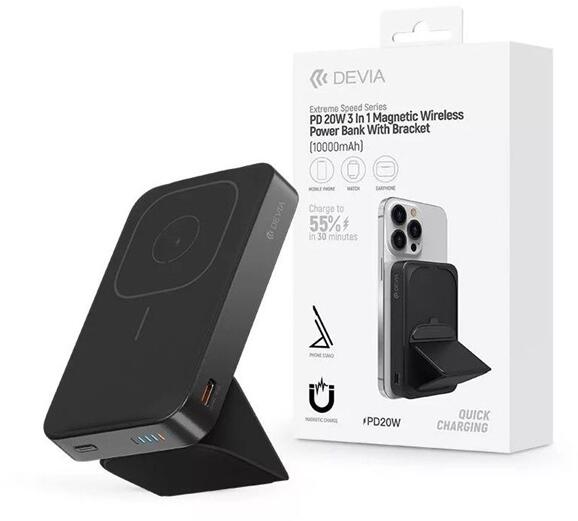 10.000 mAh külső akkumulátor alumínium házban, a telefonhasználat közbeni töltést segítő tapadókorongokkal. Vezeték nélküli teljesítmény 2A, PD (Power Delivery) támogatással a legújabb laptopok töltéséhez.