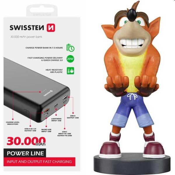 Swissten Power Line Powerbank 30 000 mAh 20W, PD, Fekete + kábel Guy Crash Bandicoot Trilogy (Crash Bandicoot)NULL...
