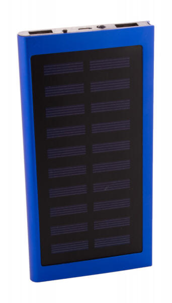 USB power bank újrahasznosított alumínium borítással, beépített napelemes töltővel és 4000 mAh-s akkumulátorral. 2 USB és 1 USB-C töltő porttal. USB-C bemenettel. USB töltőkábellel szállítjuk.