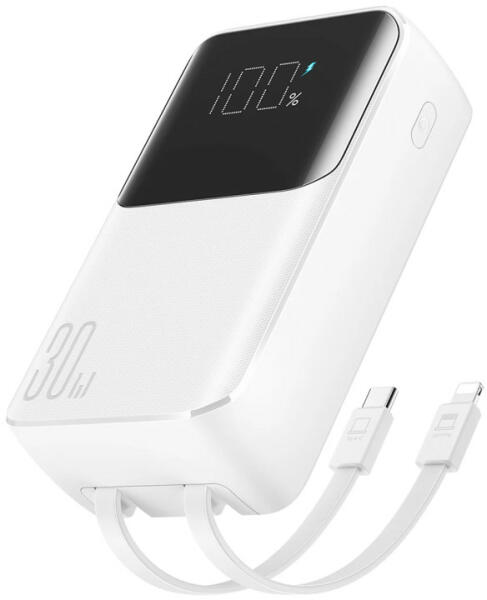 Power bank Baseus Star-Lord 20000mAh 65W 2x USB-A/micro USB/USB-C fehér A Baseus OS Star-Lord power bank egy nagy teljesítményű, 20 000 mAh-s eszköz, amely akár 65 W-os teljesítményt is támogat, így gyorsan feltöltheti eszközeit, és sok időt takaríthat meg. A teljes akkumulátortöltő körülbelül egy teljes feltöltést tesz lehetővé egy Applebook Pro 14-nek, vagy egy Nintendo
