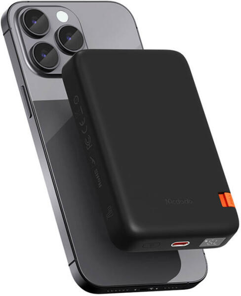Mcdodo MC-5101 Mágneses Power Bank állvánnyal 10000mAh, 20W (fekete) Mcdodo MC-5101 magnetic powerbank with stand 10000mAh 20W (black). The Mcdodo MC-5101 is a compact 10,000mAh powerbank that offers both wired and wireless charging. It is compatible with multiple charging standards and allows fast charging of phones. In addition, with its built-in stand and advanced overheat protection system,