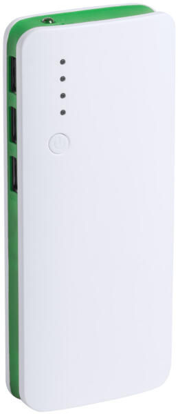 Műanyag USB power bank 3 csatlakozóval és 10000 mAh akkumulátorral. Töltőkábel nélkül szállítjuk.