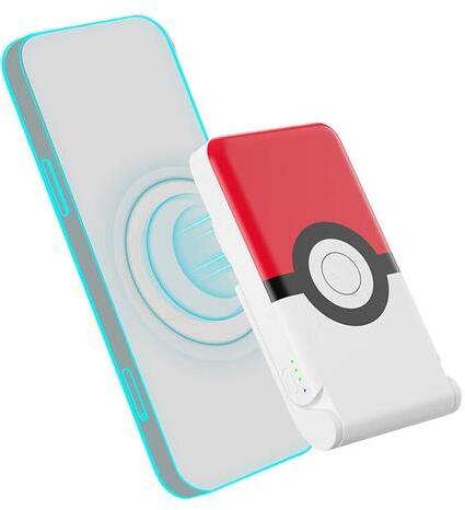 OTL magnetic powerbank 5000 mAh, USB-C 15W, Pokemon Pokeball with stand (red and white). The magnetic powerbank by OTL with a Pokemon theme will delight children and teenagers who want to gain the ability to quickly charge their devices anywhere. With a capacity of 5,000 mAh and a power output of up to 15 watts, the product is extremely powerful, while the built-in stand adds convenience and allow