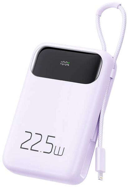Mcdodo MC-3255 10 000 mAh, 22,5 W powerbank Lightning kábellel (lila) A 10 000 mAh-s powerbank egy hordozható és nagy teljesítményű eszköz azoknak a felhasználóknak, akik megbízható megoldást keresnek mobileszközeik töltésére útközben. Kompakt kialakításának és beépített fogantyújának köszönhetően szállítása és szállítása nem okoz gondot. Könnyen leolvasható L