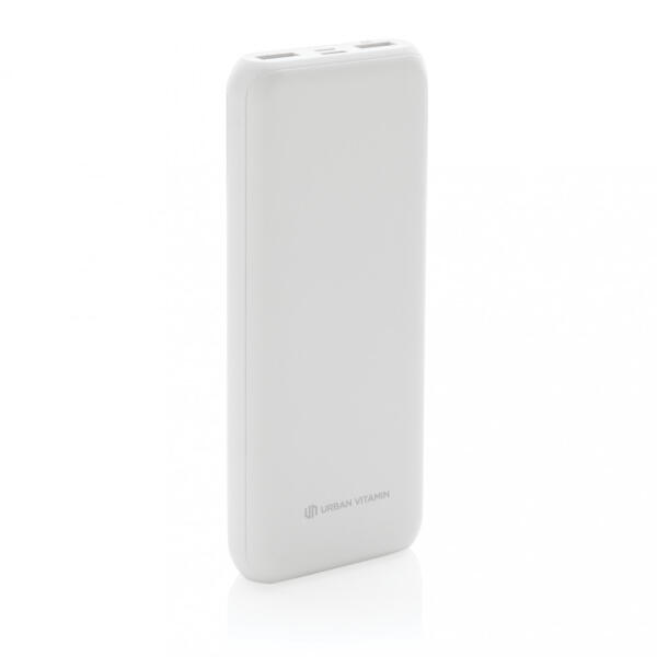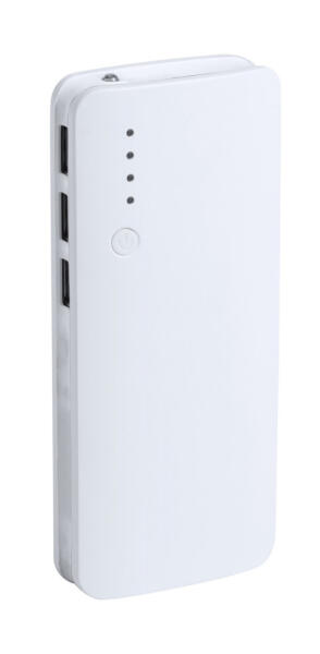 Műanyag USB power bank 3 csatlakozóval és 10000 mAh akkumulátorral. Töltőkábel nélkül szállítjuk.
