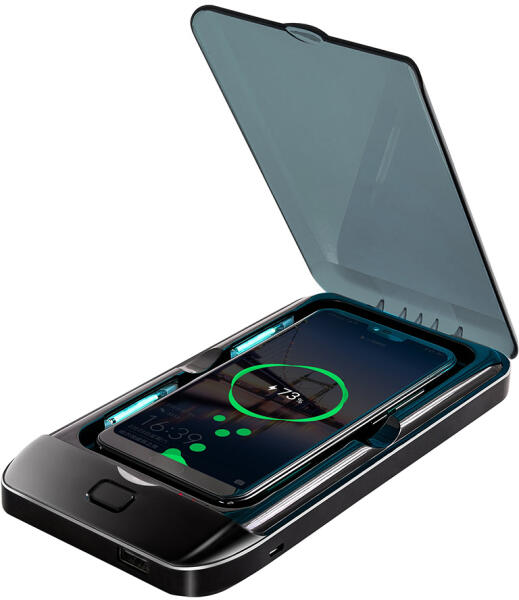 XMAX Phone Sterilizer fertőtlenítő UV lámpa, vezeték nélküli töltő funkcióvalOkostelefonok, illetve egyéb kisebb, naponta használatos eszközök, mint például ékszerek, kulcsok, maszkok, fülhallgatók vagy akár órák UVC sugárzással való fertőtlenítésére is alkalmas. Akár két eszköz töltésére használható egyidejűleg, mivel rendelkezik egy vezeték nélküli tölt