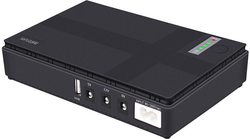 Információk Astrum PB070 10200mAh fekete mini power bank Wifi Routerhez, modemekhez 5V/9V/12v-os kimenetekkel