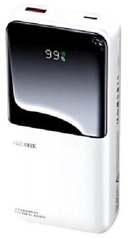Remax Cynlle RPP-680 gyorstöltő Powerbank 20000mAh Termékszín: Kék Kompakt méret Beépített Type-C és Lightning kábelek Több eszköz egyidejű töltése LED kijelző a töltöttség mutatására