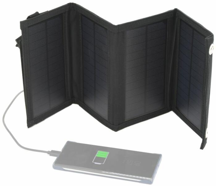A napelemes töltő mobiltelefonok és egyéb kisebb elektronikai cikkek töltésére alkalmas. Ideális kirándulásokhoz, piknikekhez és kempingezéshez. Nem kell mást tennie, mint kibontani a panelkészletet és napfényre helyezni, vagy a mellékelt karabinerekkel felakasztani például egy hátizsákra, és a panel töltőmodulját USB kábellel csatlakoztatni a töltendő készülékhez (