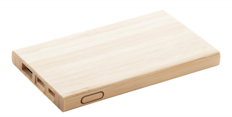 Bambusz USB power bank 4000 mAh akkumulátorral. Micro USB-n és USB-C portokon keresztül tölthető. Tartalmaz egy micro USB töltőkábelt.
