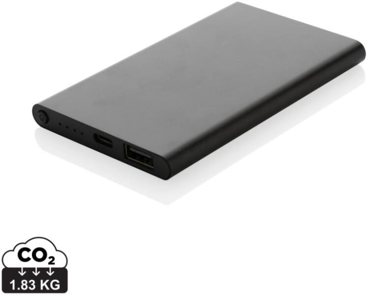 4000 mAh-s, lapos kialakítású powerbank melynek háza RCS újrahasznosított alumínium/ABS műanyagból készült. Az RCS-tanúsítvány biztosítja az újrahasznosított anyagok ellátási láncát. Teljes újrahasznosított anyagtartalom: 36% a termék összsúlya alapján. A powerbank támogatja mind az USB-A-n, mind a C típusún keresztüli töltést. Hosszú élettartamú, A-fokozatú, 4