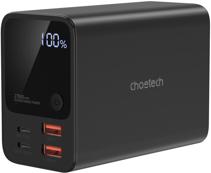 Szín:Black, KAPACITÁS:27000, TERMÉK 4. szint:Choetech, Kimeneti csatlakozók:USB-A, USB-C (Type-C), Szabványok:QC 3.0, QC 2.0, PD 3.0, PD 2.0, FCP, SCP, PPS, APPLE 2.4A, Bemeneti csatlakozók:USB-C (Type-C), EXTRA TUDÁS:LED kijelző, TÖLTÉSI TELJESÍTMÉNY:222.5,