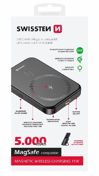 Swissten Powerbank 20 W 5000 mAh (MagSafe kompatibilis), PD, feketeNULL...