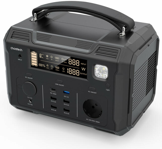 Hordozható töltőállomás 484Wh Choetech - powerbank 500W - fekete (BS004) Szüksége van áramra otthonától távol az elektromos berendezésekhez? Gyakran utazik? A Choetech hordozható töltőállomás lehetővé teszi az AC áramhoz való hozzáférést akár 1000W teljesítménnyel. Ez a sokoldalú eszköz garantálja a nagyobb készülékek megszakítás nélküli működését, mint pé