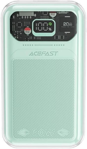 Acefast Sparkling Series M2 20000mAh Power Bank gyors töltéssel (30W) zöld színben A kristályos 20000mAh kapacitású Acefast Sparkling Series M2 powerbank beépített kijelzővel, nagyszerű választás a pasztell színek kedvelőinek - négy gyönyörű színben elérhető. Kiváló kütyü nyaraláshoz vagy irodai használatra. Gyakorlati kapacitással rendelkezik (20000 mAh), két kimenet