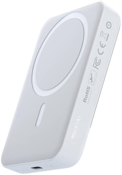 Mcdodo MC-4260 mágneses powerbank 10,000mAh, 20W (fehér). A 10,000mAh kapacitású powerbank kompakt kialakítást ötvöz a funkcionalitással, gyors és biztonságos vezetékes és vezeték nélküli töltést kínálva. Mágneses rögzítésével, masszív kivitelével és különféle okostelefon modellekkel való kompatibilitásával kényelmet nyújt a mindennapi használathoz. Ezenkívül