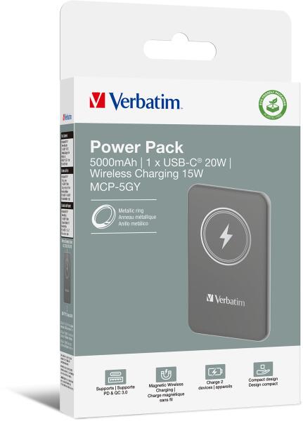 Praktikus Töltés Bárhol, Bármikor Köszöntse az elsőrangú töltési élményt a Verbatim MAG Charge 'n' Go Power Bank 5000mAh készülékkel, mely azonnal felgyorsítja az életmódját a modern technológia és a kiváló tervezés elegyítésével. Töltse eszközeit hatékonyan és gyorsan, ahol csak szeretné, a mágneses rögzítésű, vezeték nélküli töltési lehetőségek segíts
