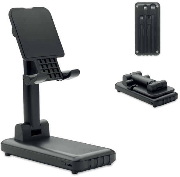 10000 mAh külső akkumulátor ABS-ből, kihúzható és összecsukható telefontartóval. Beépített multi kábelekkel. Teljesítmény: DC 5V/2A.