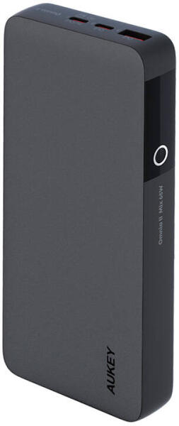 Powerbank Aukey PB-Y43, 20000mAh, 65W PD (fekete). Kényelmesen töltheti eszközeit bárhol. Az Aukey PB-Y43 powerbank 3 porttal van felszerelve (2x USB-C és USB-A), és az állapotát egy könnyen olvasható LCD kijelző jelzi. Emellett 20,000 mAh kapacitást kínál, így tökéletes utazás és mozgalmas munkanap alkalmával. Töltési sebesség Már nem kell sokáig várni, amíg eszközei f