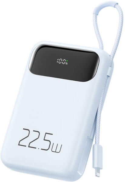 Mcdodo Power Bank MC-3254 10000mAh, 22.5W, for Light (blue) Mcdodo MC-3254 10,000mAh, 22.5W powerbank with Lightning cable (blue) The 10,000mAh powerbank is a portable and powerful device designed for users looking for a reliable solution to charge their mobile devices on the go. Thanks to its compact design and built-in handle, carrying and transporting it will not be a problem. Equipped with an