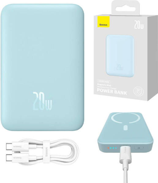 Baseus Magnetic Mini (MagSafe) Powerbank 10000mAh, 20W (kék) Baseus Magnetic Mini (MagSafe) Powerbank 10000mAh, 20W (kék) Töltse fel gyorsan és biztonságosan eszközeit a Baseus powerbankkal! A Baseus Magnetic Mini powerbank USB-C porttal rendelkezik, és vezeték nélküli töltést is lehetővé tesz. Kapacitása eléri a 10 000 mAh-t. Beépített LED-ekkel rendelkezik, amelyek segítségé