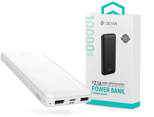 Devia Kintone V3 Powerbank, 2 x USB-A, USB Type-C, Micro USB, 10000 mAh, fehér