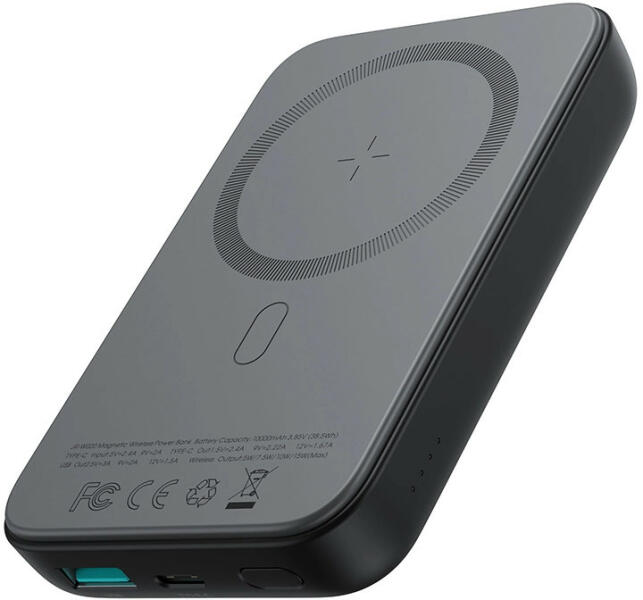 Joyroom 20W-os MagSafe powerbank 10000 mAh kapacitással, 0,25 méteres USB-A-USB-C kábellel. MagSafe technológiával működik, USB-A és USB-C csatlakozókkal is rendelkezik, így lehetővé teszi három eszköz gyors töltését egyszerre, támogatva a Power Delivery gyorstöltési protokollt. Beépített védelemmel rendelkezik a túlfeszültség, a túlmelegedés és a túltöltés ellen, a