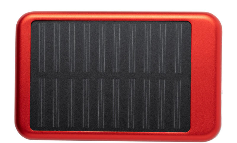 Alumínium USB power bank 4000 mAh akkumulátorral és beépített napelemes töltővel. A termék micro USB töltőkábelt tartalmaz.