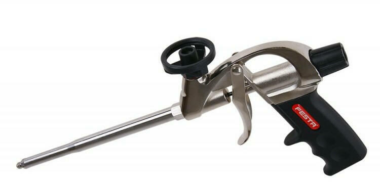 Festa Purhab kinyomó pisztoly, teflonosA Festa gyártmányú purhab kinyomó pisztoly szabványméretű 750 ml-es tubusok kinyomására alkalmazható. A szabályozható kinyomási sebesség és a masszív szerkezet elősegíti a precíz, kényelmes használatot. Pontos, precíz munkavégzést tesz lehetővé Erős, teflon bevonattal rendelkezik Fém váza garantálja a hosszú élettartamot A kin