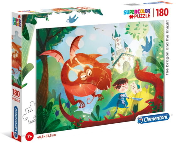 A Sárkány és a Lovag 180db-os prémium puzzle 48x33cm - Clementoni Hivatalos magyarországi forgalmazótól. Leírás: A Sárkányt és a Lovagot ábrázoló, összesen 180db alkotóelemből álló puzzle kirakós kiválóan mutathat gyermeked szobájában, hiszen az összeállítása után képként is felhasználható a fal ékes díszeként. A kiváló minőségű puzzle fényes lakkozott fe