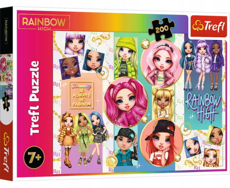 Fedezd fel a színes barátság világát a Trefl „Rainbow High puzzle kirakásával! Ez a 200 darabos kirakós ideális választás minden fiatal rajongó számára, akik elvarázsolódnak a Rainbow High karakterek lenyűgöző és színes világától. A Trefl márka híres a kiváló minőségű puzzle-jeiről, és ez az adott darab sem kivétel. A jól illeszkedő elemek garantálják az egy