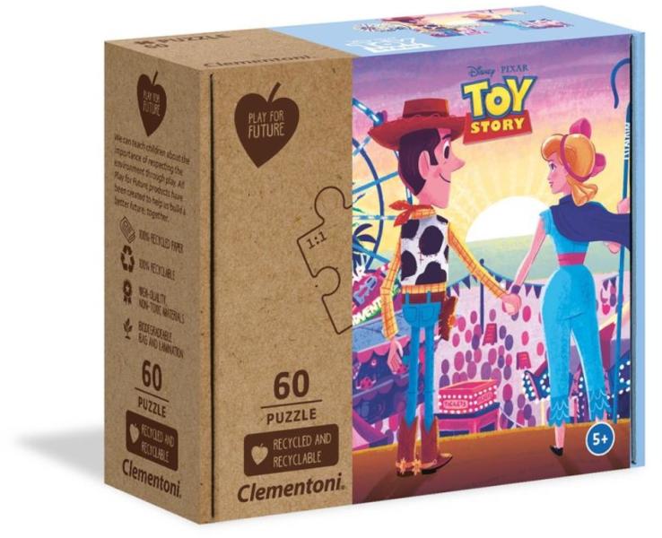 Minden gyermek álmodozik titkon arról, hogy játékai életre kelnek, mint a Toy Story-ban. A kedvelt mesehősök sok kalandjukba vontak már be minket. Ezzel aClementoni 27003 Play for Future puzzle - Toy Story (60 db-os)kirakós készlettel most Woody és kedvese Bo Peep egy randevújába tekinthetnek be a mese kedvelői. Kedvenc cowboy-unk és pásztorlányka szerelme a vidámparkba látogat